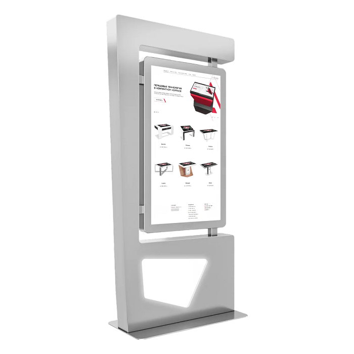 Сенсорный киоск Line 43" — это оригинальное и функциональное решение для автоматизации процессов и привлечения внимания посетителей. Минималистичный корпус с «парящим» сенсорным экраном и геометрическим основанием делает эту модель настоящим акцентом в любом интерьере.